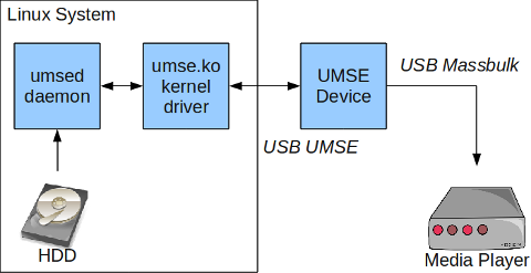 UMSEUMSE - USB Mass Storage Emulator- эмулятор USB флэшки. Проект-фантазия. СсылкиПричины созданияПриобрел я себе однажны простенький медиаплеер, который подключается к телевизору и позволяет смотреть на нем всякие видеофайлы. В качестве источника этих самых файлов в плеере был предусмотрен USB порт. Записывай себе фильмец на флешку и смотри его на телевизоре - красота! Однако, через какое-то время этап с копированием фильма на промежуточный носитель стала напрягать. "А не получится ли подключить медиаплеер непосредственно к домашнему серверу с фильмами?" - спросил я себя однажды. Так и родилась идея создать некий провод, который бы смог связать каталог на компьютере с USB портом плеера. ЦелиЦели были сформулированны следующим образом: